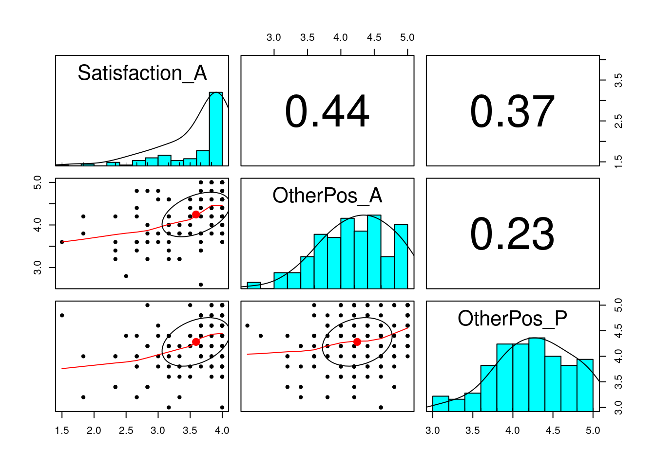 Here we have a hypothetical research question of how a person views their partners (OtherPos_A) and how their partner views them (OtherPos_P) predict their marriage satisfaction (Satisfaction_A).